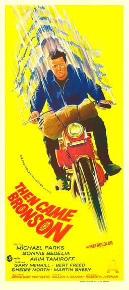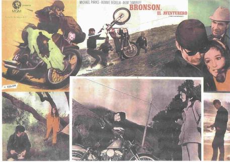 Inasmuch as the original movie, "And Then Came Bronson", wasn't released in U.S. theaters, all the poster graphics come from outside the States where it was shown as a theatrical release. I've gathered them from Austrailia, New Zealand, South America, Turkey(?), and Mexico. The lobby cards at right are from Mexico. $8 each. There are 4 all told in the genre of the one shown.